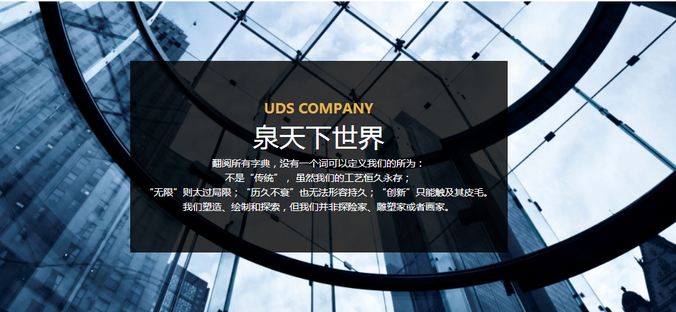 UDS泉天下,隶属于广东省佛山市顺德区中美丽臣电器有限公司,专业生产高端、个性热水器,服务于全球厨房卫浴行业。位于中国家电重镇——顺德容桂,生产基地坐落于容桂大道南33号。容桂大道有中国家电"龙脉"之称:格兰仕、泉天下、海尔、樱花、万和等品牌林立。